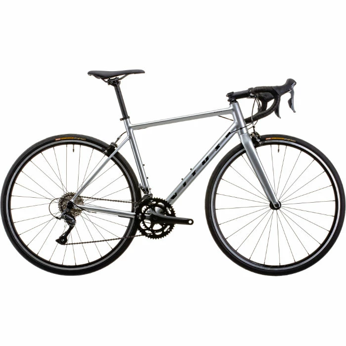 The Vitus Razor features an aluminium frame and carbon fork, offering a superb balance of strength, agility and all-day riding comfort. Vitus has also equipped it with a fast-shifting Shimano Claris 2×8-Speed groupset, powerful Tektro caliper rim brakes and a quality aluminium Vitus finishing kit.